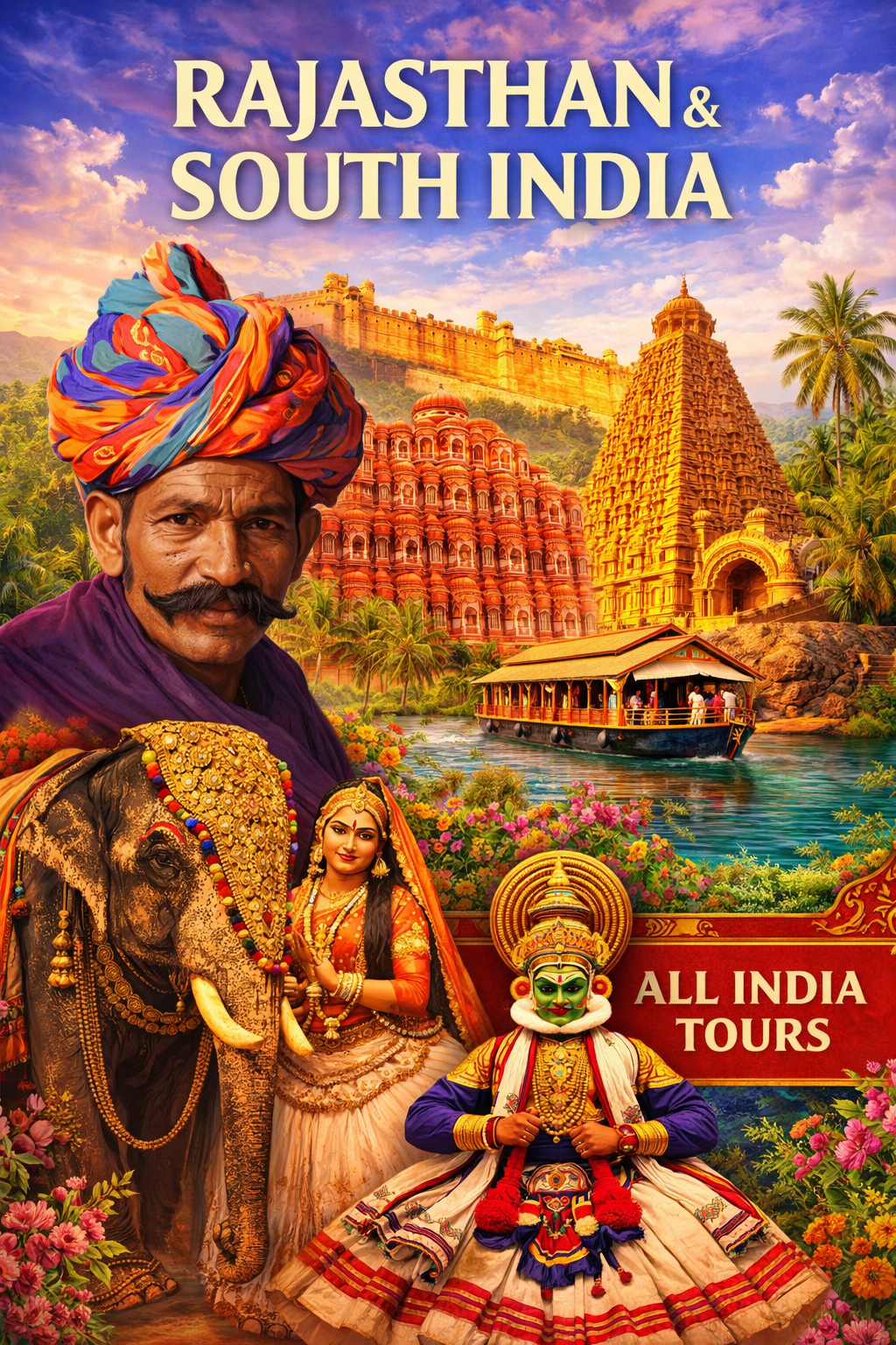 Discover the beauty of India with our All India Tours Rajasthan & South India Tour Packages. Experience royal palaces, colorful culture, ancient temples, scenic backwaters, and breathtaking landscapes in one unforgettable journey.